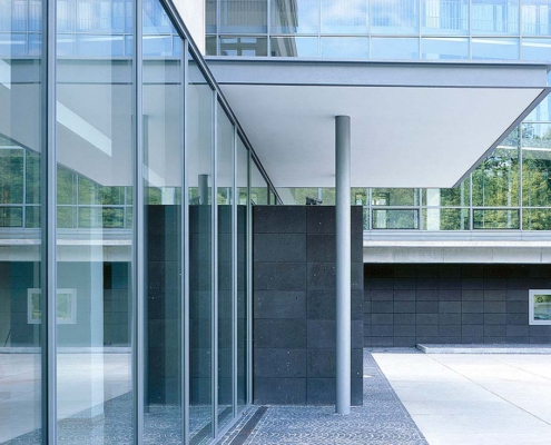 Die Tiefergründung erfolgte mittels Magerbetonpfeilern in tragfähige Gipskeuperschichten. Die Treppenhäuser, Aufzugswände und betonierten bzw. gemauerten Wandscheiben stabilisieren das Gebäude. Die Fassade wurde zum größten Teil als WDV-System aus nicht brennbarer Mineralwolle ausgeführt.